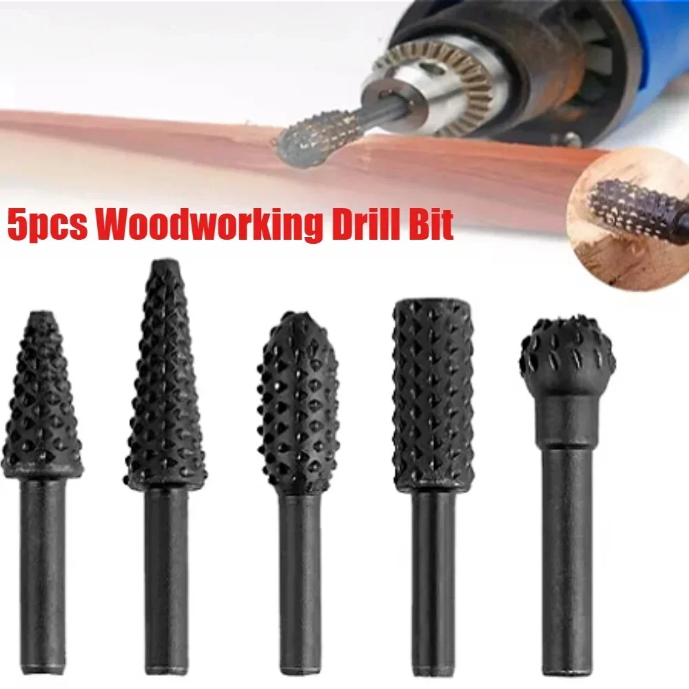 Drill Bit Set for Wood Carving, Drill Bit Grinder, Round Shank, Rotary Milling Cutter, 5Pcs, 1/4"